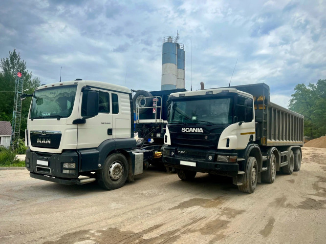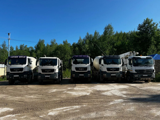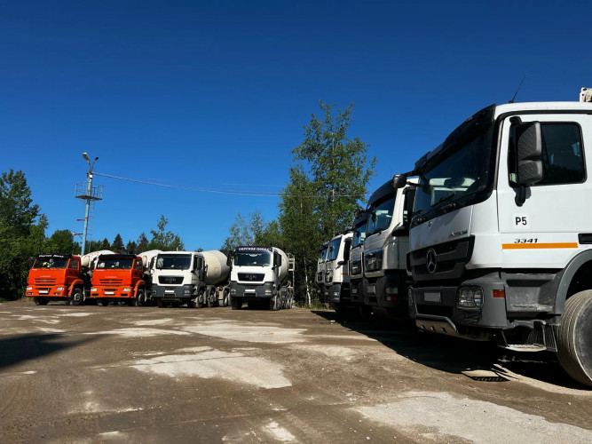 - Личный автопарк состоит из 10 автобетоносмесителей вместимостью 10, 8, 7 и 5 м3, с возможностью увеличения, за счет привлечения третьих лиц и автобетононасоса от 22 до 38 метров.